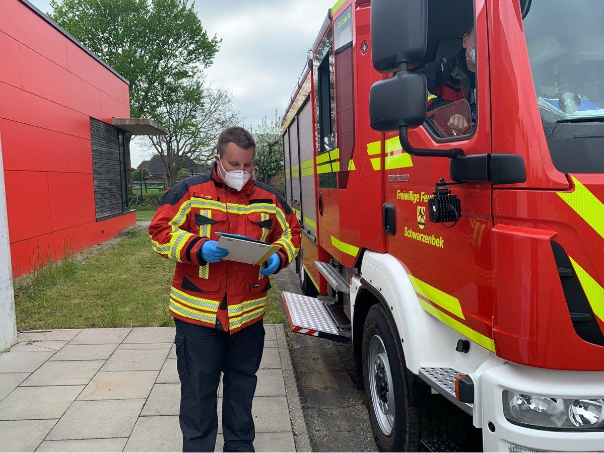 Seit Wiederaufnahme des Lehrgangsbetriebes an der FTZ überwacht der LZ-G die vorgeschriebenen Hygieneabläufe und den Ablauf der Coronatests. Vorab mussten Verkehrsschilder vom Bauhof der Stadt Mölln abgeholt, Hinweisschilder bedruckt und Verkehrssicherungsmaterial des KFV zusammengestellt werden.